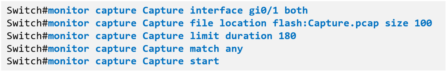 Article qui détaille la réalisation d’une capture au format pcap directement depuis un switch Cisco Catalyst 9000 ou 3650/3850. Ce qui peut permettre un diagnostic de problème à distance en évitant le déploiement d’une sonde ou un déplacement sur site. Nécessite un niveau de licence IP Base ou IP Services sur les Catalyst 3650 / 3850 (pas disponible sur LAN Base).